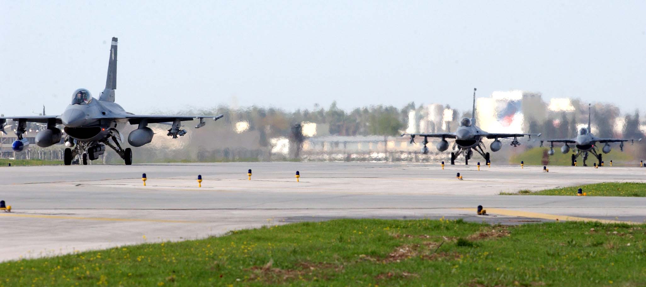 INCIRLIK AIR BASE, Turkey -- An F-16CJ Fighting Falcon pilot with the 55th Expeditionary Fighter Squadron prepares for his final takeoff from here. He and other airmen are returning home to Shaw Air Force Base, S.C. after supporting Operation Northern Watch for several years. Aircraft flew their last ONW mission March 17. (U.S. Air Force photo by Airman 1st Class Joseph Thompson)