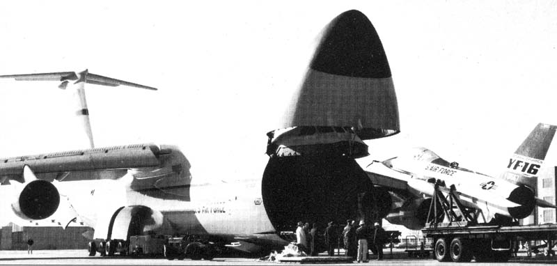 Moving of first prototypy by C-5A Galaxy from Fort Worth to Edwards AFB |