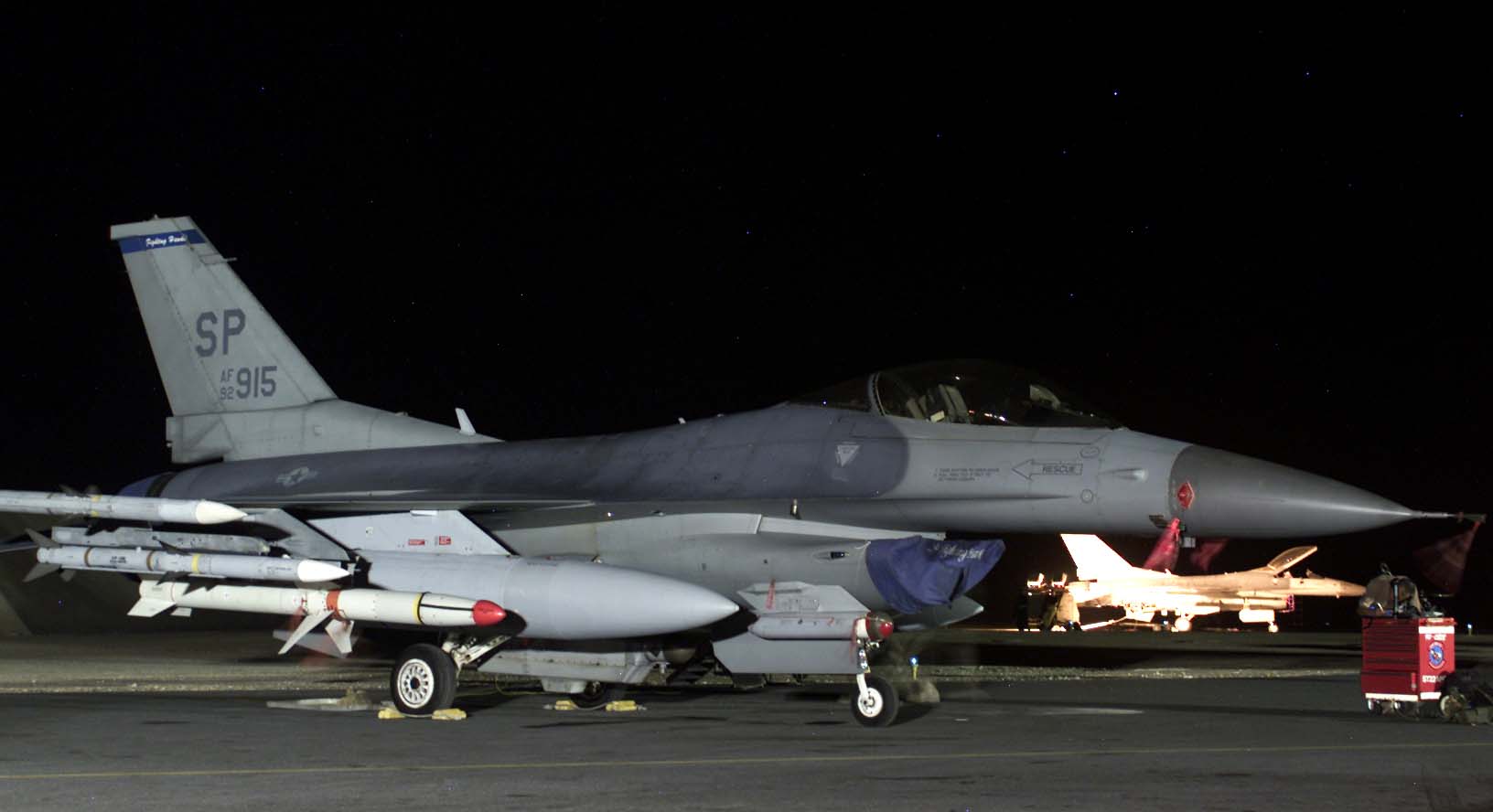 SOUTHWEST ASIA -- An F-16CJ Fighting Falcon sits quietly at night March 20 at a forward-deployed location in Southwest Asia. (U. S. Air Force photo by Master Sgt. Terry L. Blevins)