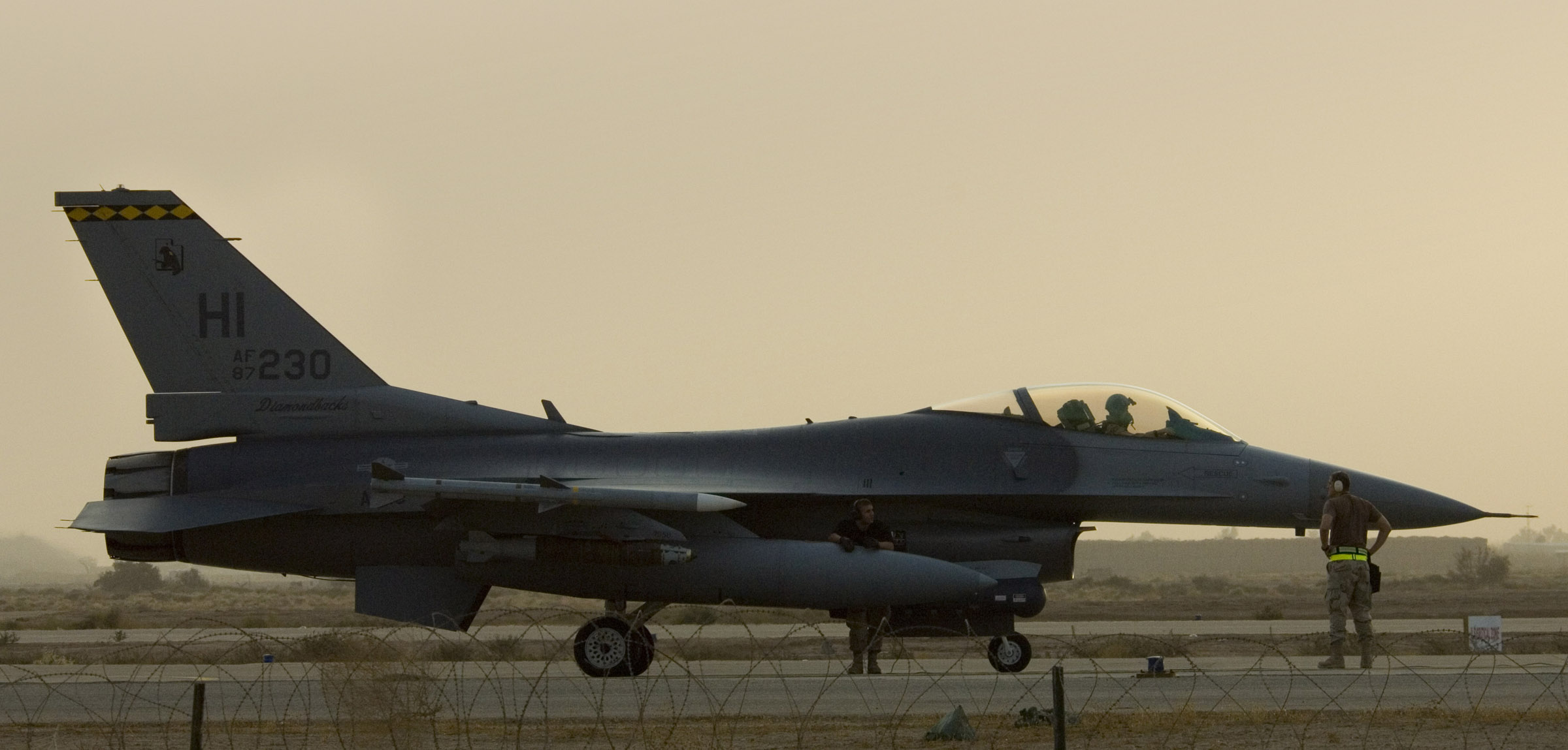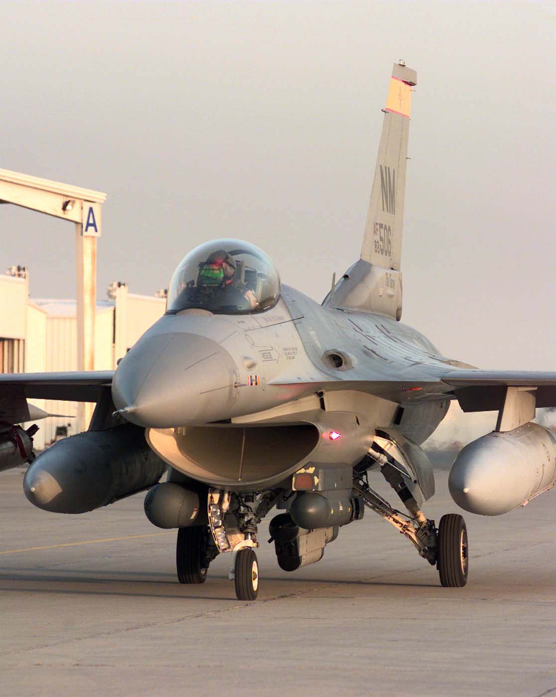 OPERATION SOUTHERN WATCH -- A New Mexico Air National Guard F-16C Fighting Falcon taxis out for an Operation Southern Watch patrol mission. The 188th Fighter Squadon recently joined their active duty counterparts from the 523rd Fighter Squadron, 27th Fighter Wing, to support air operations over the No-Fly, No-Drive Zone in Southern Iraq. (U.S. Air Force photo by Airman 1st Class Greg Davis)