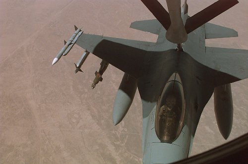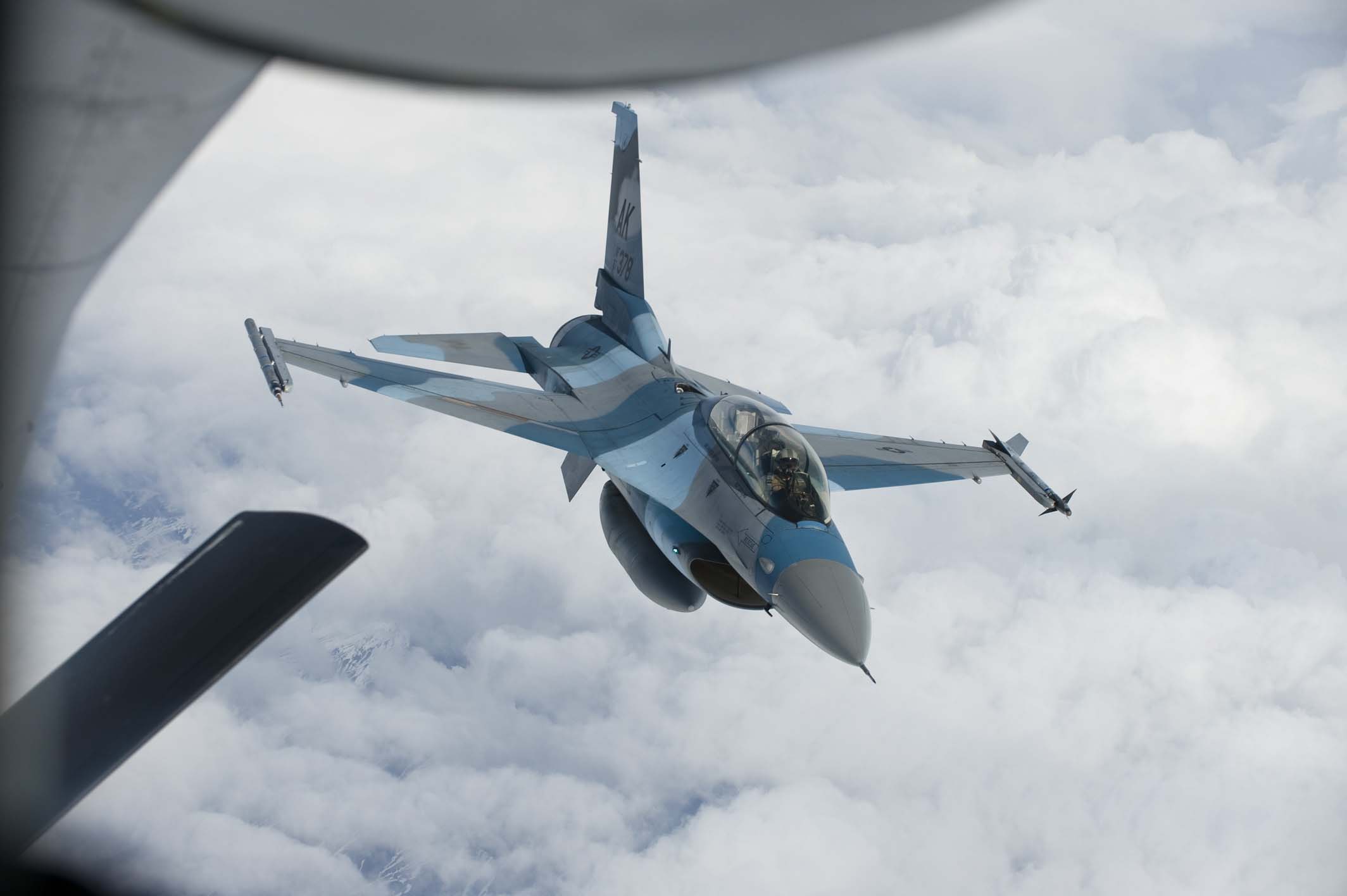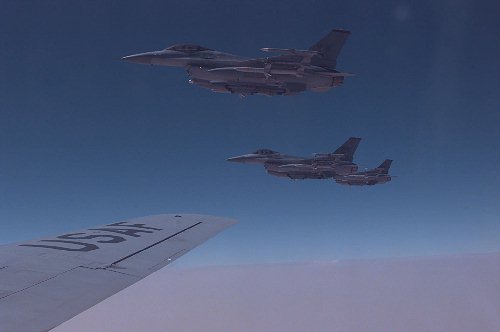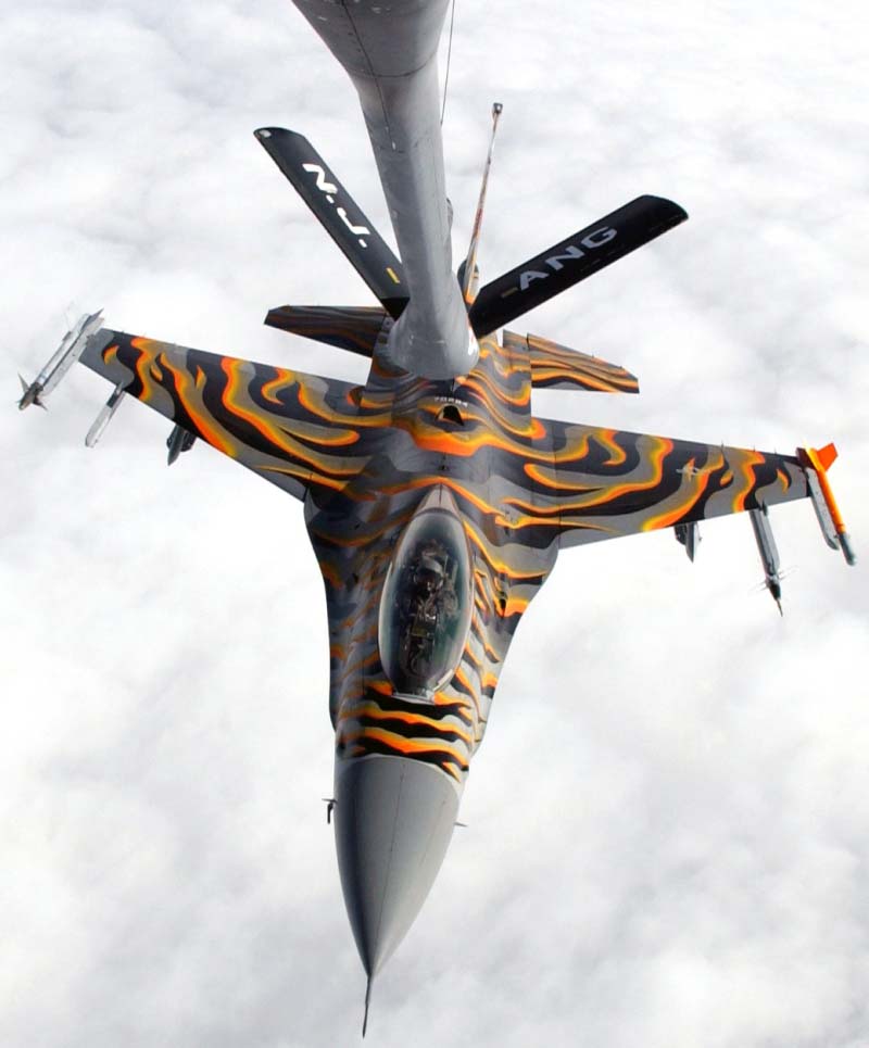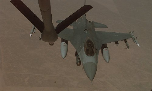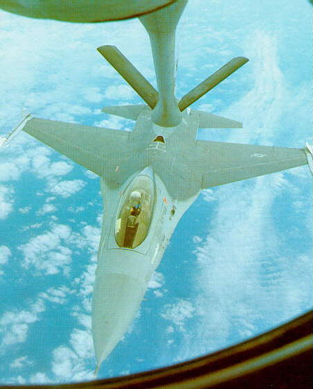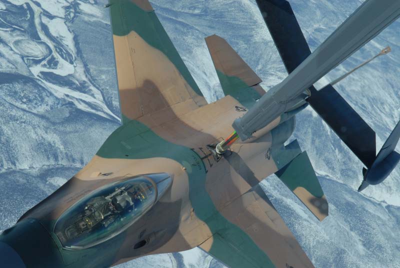 F-16 ready to refuel from KC-135 at 7000km long flight simulating overatlantic combat |