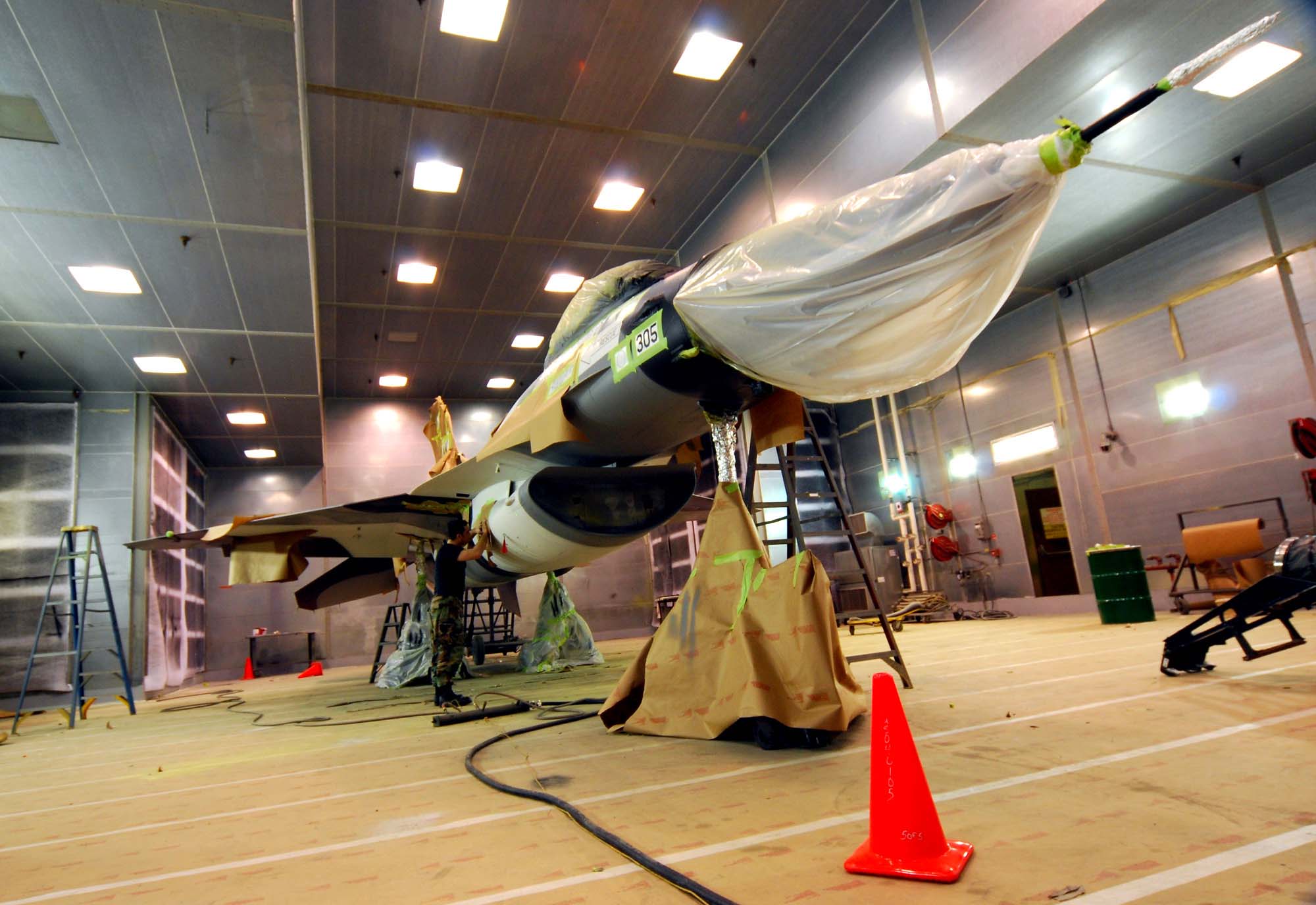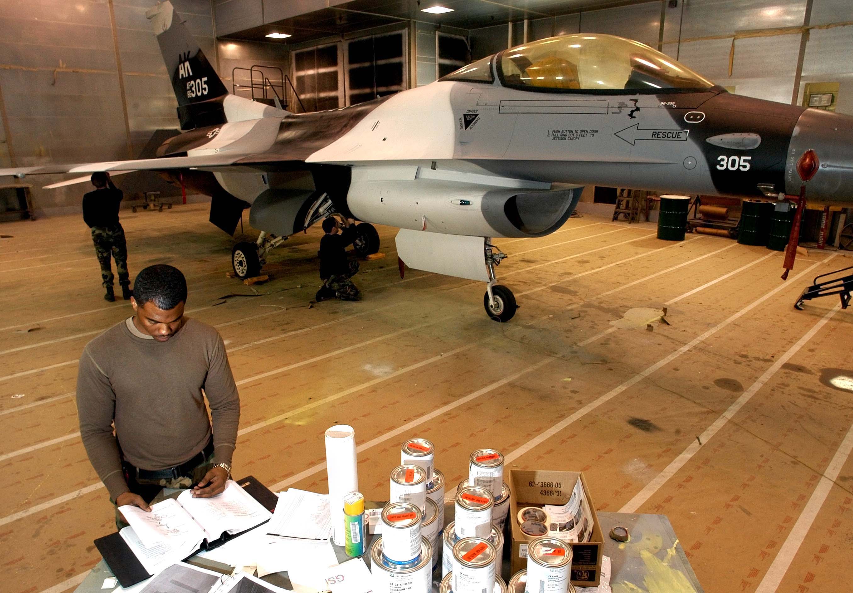 Danish F-16A in hangar |