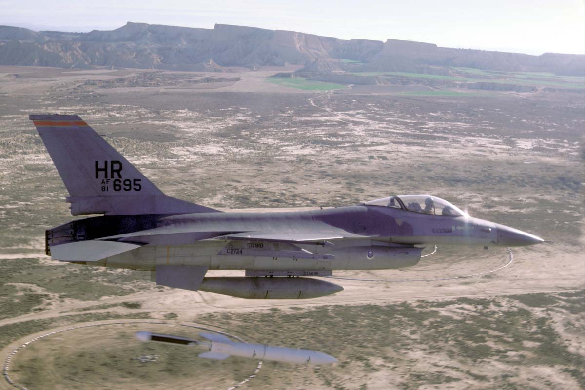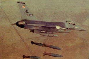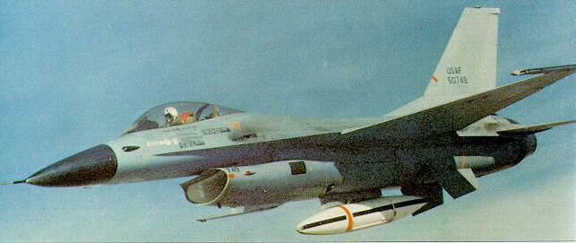 YF-16 sn.72-1568 experimental flight with Paveway bomb and laser marker Atlis |