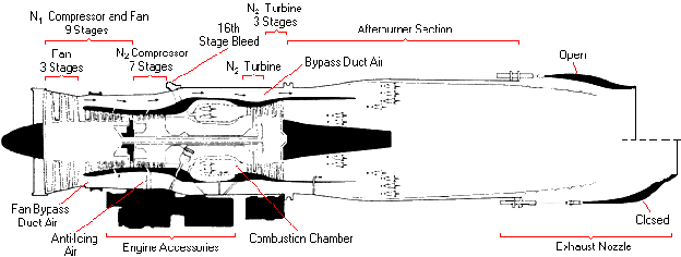 | Thrust: | F-14A: 20,900 pounds (9,405 kg) static thrust per engine; F-14B and F-14D: 27,000 pounds (12,150 kg) per engine | |