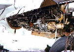 Landing Gear Retractable tricycle type. Twin-wheel nose unit and single-wheel main units retract forward, main units inward into bottom of engine air intake trunks. Arrester hook under rear fuselage, housed in small ventral fairing. |